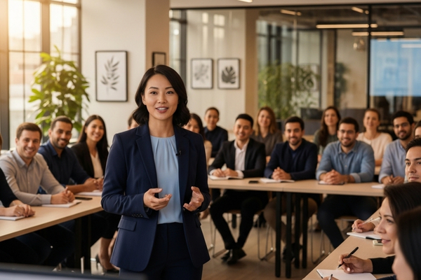 Dalam kelas public speaking, peserta HR dilatih untuk menyampaikan pesan dengan bahasa tubuh dan intonasi yang menunjukkan ketulusan — terutama saat menyampaikan informasi sensitif.